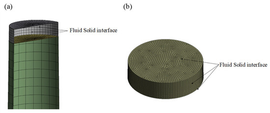 (a) The mesh arrangements of fluid in TLD and (b) the fluid–structure coupling interface.