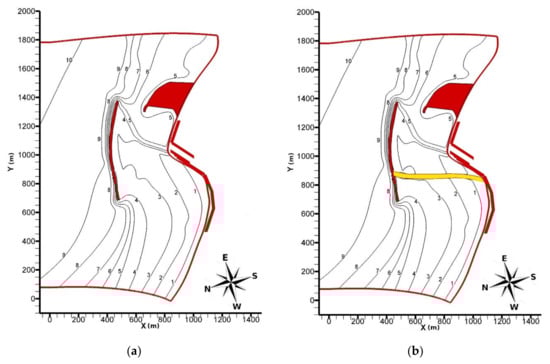 - Kian, R.; Velioglu, D.; Yalciner, A.C.; Zaytsev, A. Effects of Harbor Shape on the Induced Sedimentation; L-Type Basin. J. Mar. Sci. Eng. 2016, 4, 55. [Google Scholar] [CrossRef]