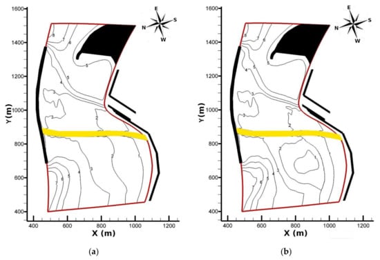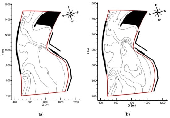 - Gallerano, F.; Cannata, G.; Scarpone, S. Bottom changes in coastal areas with complex shorelines. Eng. Appl. Comput. Fluid Mech. 2017, 11, 396–416. [Google Scholar] [CrossRef]