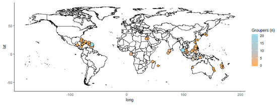 - Morris, A.V.; Roberts, C.; Hawkins, J.P. The threatened status of groupers (Epinephelinae). Biodivers. Conserv. 2000, 9, 919–942. [Google Scholar] [CrossRef]