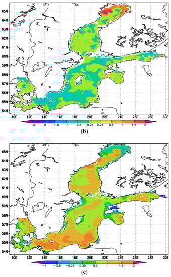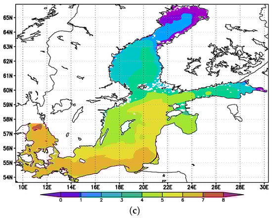 Figure 4c). This part of the Baltic Sea is covered by sea ice in winter. To improve the accuracy of modeling, it is necessary to include functions describing the sea ice melt/formation in the data assimilation procedure of hydrophysical fields in this region.