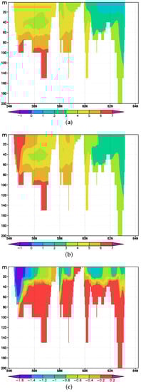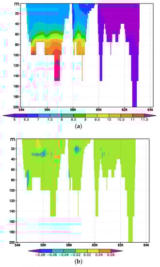 Figure 5 shows the daily mean temperature on the 15th day in the vertical section of the Baltic Sea along 19