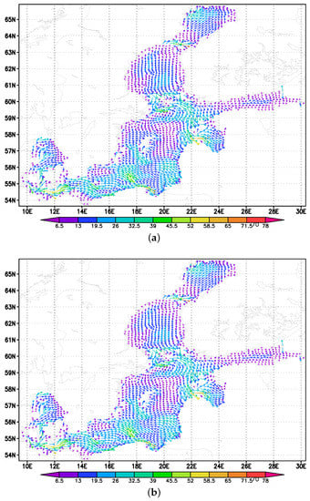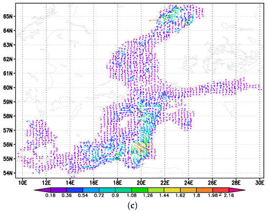 Figure 7c, insignificant deviations of the velocity field are observed in a small subdomain of the southern part of the Baltic Sea in the vicinity of the the point 20