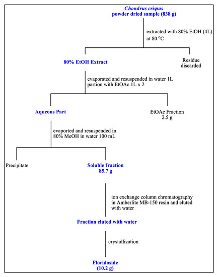 Extraction and purification process of floridoside from 80% EtOH extract of C. crispus.
