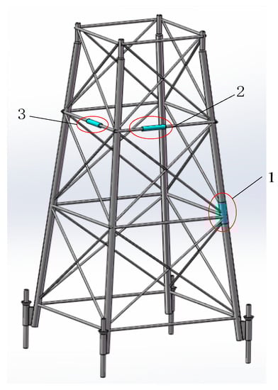 In the process of wave propagation, the wave will be accompanied by the flow of water. When wave and current exist together, they will interact with each other and influence each other’s propagation. Wave will refract and the current velocity will change. The following is an analysis of the wave field formed by regular waves. The installation position of grouting clamp is shown in Figure 4. The part 1 is vertical clamp and the part 2 and part 3 are horizontal clamps [22].