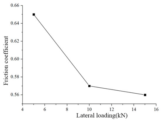 Combining formula (16) and Table 3, three groups of different friction coefficients can be obtained, and the relationship between transverse loading force and friction coefficient is plotted, as shown in Figure 15.