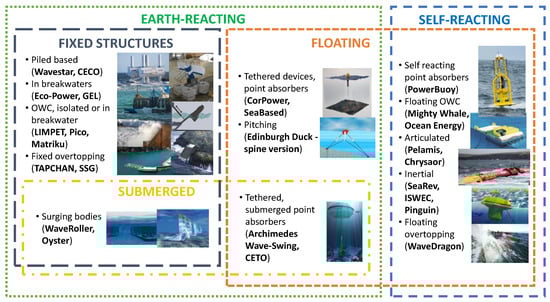 Harvesting power from ocean waves represents a fascinating challenge. Over the years, many wave energy converter (WEC) concepts have been proposed [1,2]. Figure 1 summarizes different examples of the most successful WECs projects. WECs can be categorized depending on how the power take-off (PTO) system is activated. In general, a PTO requires a counter-reaction force to work; thus, two main groups of devices can be defined: Earth-reacting and self-reacting. Moreover, devices can be subdivided in fixed structures, floating, and submerged. For all WECs, the PTO system is the most important component, which needs to be developed as an integral part. The PTO influences the dynamics of a WEC and its reliability, performance and cost are critical factors. Consequently, early experimental testing of the PTO at laboratory scale becomes essential for validation of WEC development. Therefore, it is very important to consolidate guidelines and theory for WEC scaling [3] with particular attention to the PTO system.