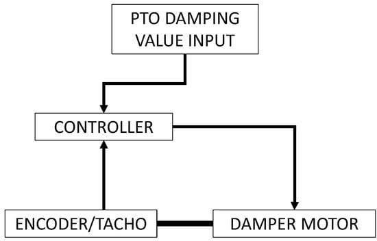 Different options for the reproduction of the PTO system on a laboratory scale exist. Apart from using miniaturized PTO systems, which can be feasible at larger experimental scales (greater than 1:25), PTO simulators may be a feasible solution. The lasts allow for reproducing a realistic PTO behaviour, at least from the theoretical standpoint, skipping errors relative to friction losses. In this case, representative PTO forces are targeted. A review of the topic is provided by Beatty et al. [4]. There are various advantages by physically model PTOs at laboratory scales by using active damper systems. The implementation of such PTO simulators allows for experimental flexibility. By using such options, the PTO force can be highly customized to specific needs. For instance, an active PTO simulator can be an electric motor working as an active damper with a feedback control loop [8,26] or electromagnetic type of system based on eddy currents [27,28]. While the last kind of system requires advanced electromechanical design, PTO systems based on the use of electric motors, instead, can be set up by using off-the-shelf components, for example as implemented by Zurkinden et al. [22], who used a feedback control loop and a PID set-up (close-control loop) for emulating the PTO force, e.g., as for Figure 3. To well represent the PTO force using a control loop approach, very low-latency control electronics are required. Dedicated computer resources for the PTO control should be used, thereby; latencies can be minimized, i.e., within orders of few milliseconds. A controller, connected as for Figure 3, corrects the PTO force by processing information (rotation speed and direction) provided by the encoder or tachometer element. Moreover, through a look-up function, it is possible to implement specific adjustments depending on previous calibration and characterization of the electric motor. Active PTO simulators, in theory, could allow testing at model scale any type of WEC’s PTO control strategy, and eventually, almost reproducing faithfully the behaviour of the real scale prototype.