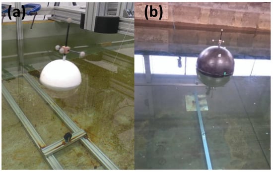 Point absorber devices tested at: (a) 1:86 and (b) 1:33 model scales.