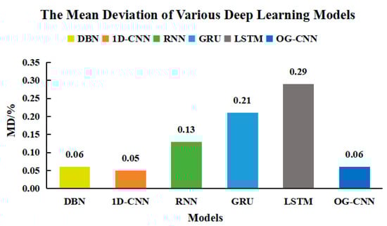 We chose mean deviation (MD) to evaluate the stability of the oil film thickness inversion results of the OG-CNN model. A larger MD value indicates more jitter in the model and worse model stability. Its calculation formula is as follows: