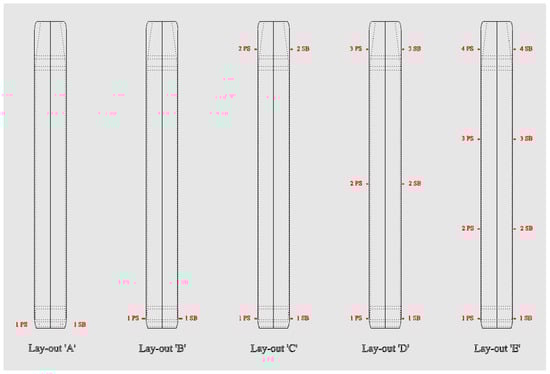 The actuator disc was simulated using a fan boundary condition in the ANSYS Fluent CFD package. A boundary condition was applied on a circular surface whose diameter was set so that the total area of the propellers was constantly 2.4 m2. Diameters and locations of actuator disk centers in individual layouts are shown in Table 4.