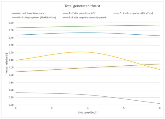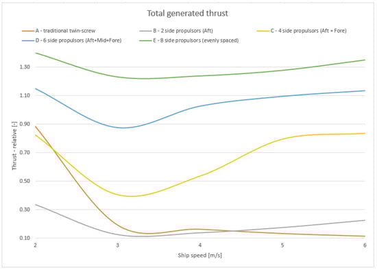 Propulsion thrust, shallow water (layout E). Source: Authors.