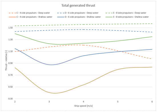 Total generated thrust, shallow water (comparison). Source: Authors.
