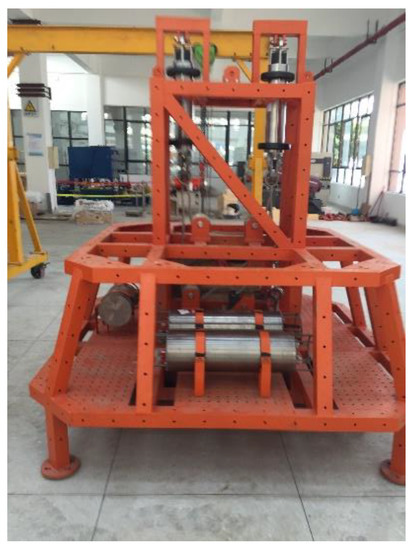 The cage has dimensions of 2.25 m × 2.25 m, with a height of 2.53 m. The seafloor junction box and the video module are fixed on the grid of the cage. The diameter of the titanium cylinder of the junction box is 320 mm, with a length of 1060 mm. The DC–DC converter and data sample and transmission module are fixed in the two titanium cylinders separately.