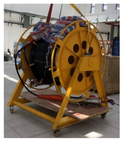 For the convenience of sending divers to salvage the equipment in case of system failure, the near-shore laying depth was set at 20 m. The EOM cable was directly used to connect the Surface Buoy and the Benthic Observation Node, in the form of a catenary. The length of the EOM cable was about 3 times of the water depth. Figure 10 shows the cable and cable reel used for the inshore test.