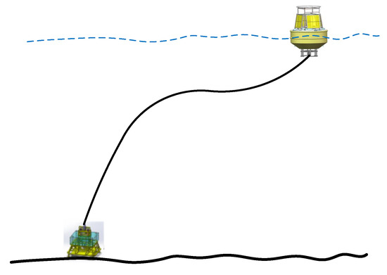 In order to test the data collection and communication ability of the entire system, as well as the power supply of MBOSBC, the system first needed to be tested inshore. Therefore, a mooring scheme with a depth of 20 m near the shore was also designed, as shown in Figure 9.