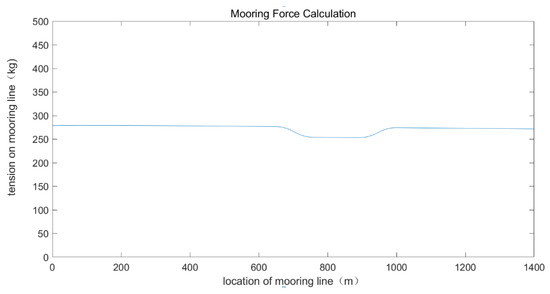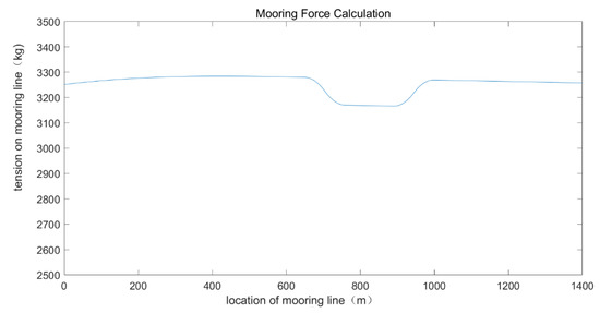Under extreme sea conditions, the mooring system adopts the shape of an “S” mooring system, which is shown in Figure 12. We selected a micro-segment on the mooring cable to analyze its tension. The force analysis of the micro-segment subjected to the ocean current is shown in Figure 13.