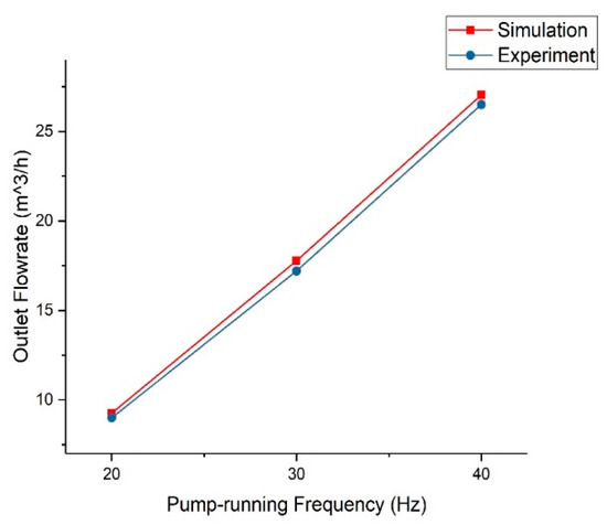 Comparison of the outlet flow rates obtained by the simulation and experiment.