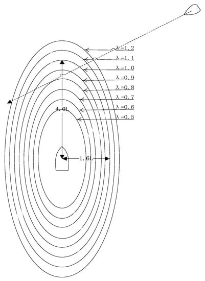 2.2. Identification of the Risk of Collision Based on the Ship Domain