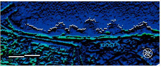 The Sentinel-II data in Figure 3 were plotted in RGB colors. In order to enhance the visibility of the underwater crescentic sandbars, the image was processed by applying the algorithm developed in [21] by which the position of nearshore sandbar crests was extracted from Sentinel-II images. In this study, the same algorithm was applied for the detection of sandbar positions. In this approach, calibrations based on in-situ measurements were not necessary to detect the positions of underwater sandbars. In addition, corrections of absolute values between different satellite images that might have different reflectance were not necessary either because the purpose was to extract the shape of response over underwater profiles perpendicular to the shoreline.