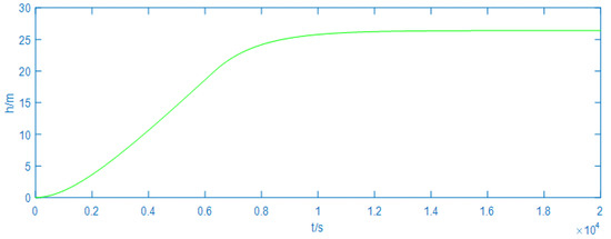 By calculating these parameters, we find that the length of the tank is 46.6 m, the average width is 33.9 m, the average cross-sectional area is 1579.74 m, and the height of the tank is 26.4 m. LNG carrier tank-level control is meaningful only when the LNG carrier is performing loading and discharging operation. As these two operations are roughly the same, we can only simulate the loading operation and the cross-sectional area of the output tube can be set at a smaller value: 0.01 m2. Through a lot of trials, we set R = 1, ; then, we can get the linear model parameters by using , .