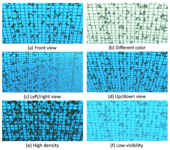 Different water areas have different ecological environments, which also lead to different water quality. In order to test the robustness and universality of the algorithm in practical applications, this section discusses the effect of the algorithm in different colors, visibility, and density of marine growth.