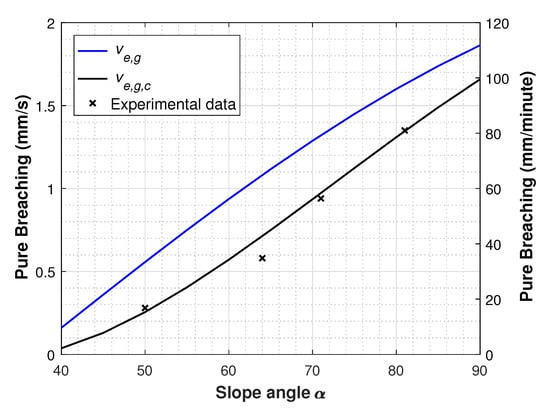 Alhaddad et al. [18] showed that Equation (13) somewhat overestimates pure breaching. Therefore, we propose here an empirical correction factor of , which leads to the expression of the corrected pure breaching :