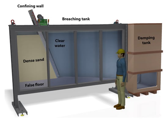 - Alhaddad, S.; Labeur, R.J.; Uijttewaal, W. The need for experimental studies on breaching flow slides. In Proceedings of the Second International Conference on the Material Point Method for Modelling Soil-Water-Structure Interaction, Cambridge, UK, 8–10 January 2019; pp. 166–172. [Google Scholar]