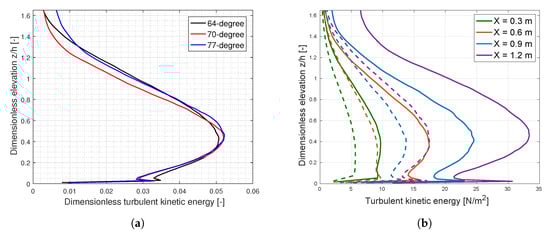 Profiles of turbulent kinetic energy (TKE) are constructed to analyze the vertical distribution of the TKE within the flow. The total TKE is calculated using the turbulent velocity components averaged over a 3-second time span as follows