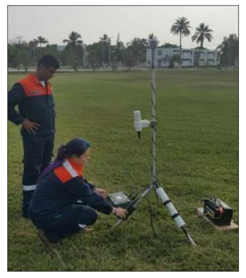 Additional magnetic information is required, whether from magnetic observatories or from a Base Station near the survey area, with the purpose of improving the quality of the data. In this case, a Geometrics G-862 RBS Base Station (Figure 2) was used, which was acquired by the General Maritime Directorate in 2015. This was positioned at a minimum radius of 60 m from any source of electromagnetic interference. This reduces the errors that can occur in the data, due to fortuitous cases, such as electromagnetic interference from the solar field.