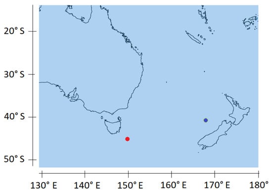 Why the insolation variations and their effects observed on the temperature of sea water at high latitudes of the gyres are not proportional stems from the efficiency of resonant forcing of GRWs in subharmonic modes, which depends on the deviation between the forcing and natural periods []. However, the relevance of GRWs is not only worthy of interest in the analysis of the causes of the MPT, but also for explaining the observed modifications of the circumference of the South Pacific subtropical gyre following this event whose impact is considerable. For this, the Tasman Sea is rich in observations, being subject to both the warm subtropical front and the cold sub-Antarctic front of the Antarctic Circumpolar Current. The history of currents over the last million years is traced through sediment cores sampled from the ocean floor within ocean deep drilling programs.