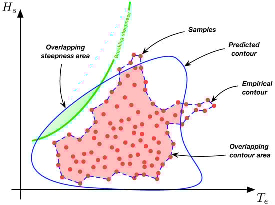 If a contour has good physical validity, the overlap of the breaking steepness curve with the environmental contour will be small, meaning that the