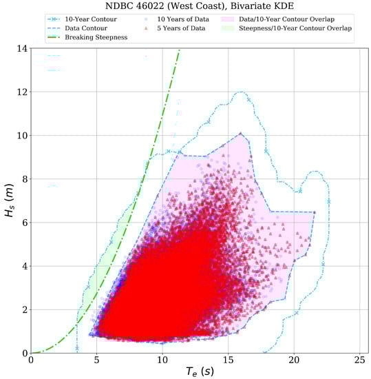 Once again, the overlapping area of the environmental contour and steepness curves is normalized by the area of the contour to allow for comparison of this metric across study sites. This metric, hereafter referred to as