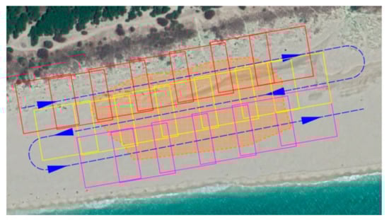 As we previously specified, the area chosen for the study is 178 m alongshore and 84 m cross-shore, and therefore its surface area is about 15,000 m2, although the overflight area was obviously taken of a larger surface.