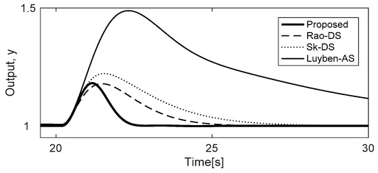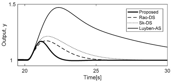 In addition, the IAE values are smaller in the order of the proposed method, Rao-DS, Sk-DS, and Luyben-SA.