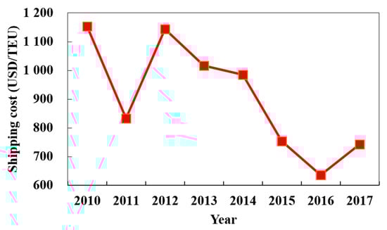Shipping cost of 20′ container freight in 2010–2017. Source: plotted by authors based on data of [].