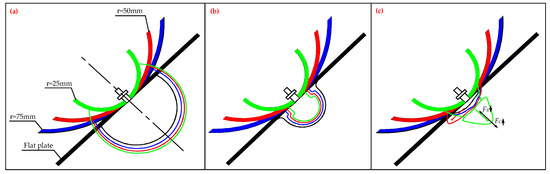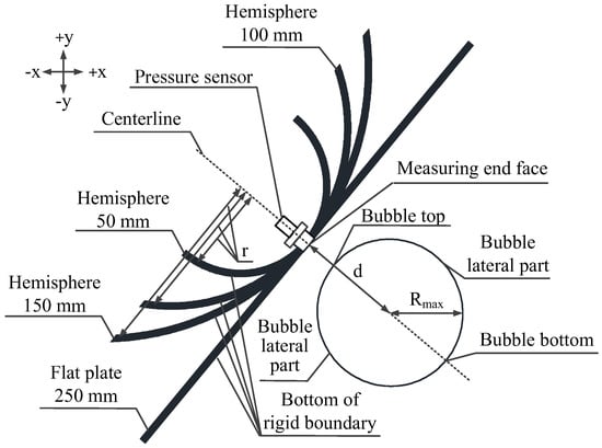 In order to better discuss the experimental results, we used the bubble maximum radius (), boundary structure radius (r), and explosion distance (d) to dimensionlessly deal with the boundary structure curvature parameter (ζ) and explosion distance parameter (γ). See Equations (1) and (2) for details [42,43]: