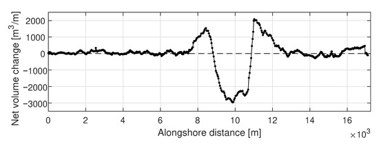 Profile volume changes are separated into net volume changes (Equation (7)) in the cross-shore profile and gross volume changes (Equation (8)):