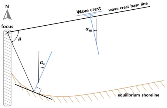 PBSE can be applied to the polar coordinate system for the circumference that fits the shoreline. By applying PBSE to the polar coordinate system, the applicability of the model to shorelines with curvature, such as a pocket beach, can be enhanced. Accordingly, applying Equation (5), as converted to the polar coordinate system, yields Equation (10).