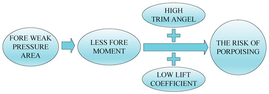 The weak pressure area at the fore of hull bottom in the MFS causes the fore moment to be lesser than the rear moment, coupled with the existence of high trim angle and the low lift coefficient, porpoising occurs. Releasing the side-hulls in the water increased the total lift of the hull bottom and the rear longitudinal moment; thus, the high trim angle could be decreased, and a strong pressure area at the fore inhibited porpoising instability.