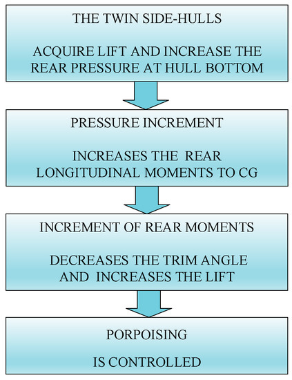 Likewise, adopting the same integral strategy, the dimensionless forms of the resistance and lift for the twin side-hulls are acquired as follows: