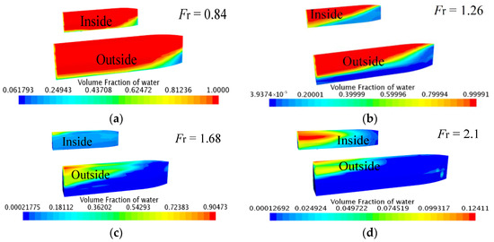 Moreover, the volume of fluid (VOF) method, proposed by Nichols and Hirt [34,35] in 1981, was also used to track the change of the free surface in this research. In the VOF method, the most critical aspect is obtaining the volume ratio function (F) of the specified fluid occupancy in a grid cell. When the calculation of the F values in each grid cell is completed, the motion interface of the liquid-gas, two-phase flow can be tracked.