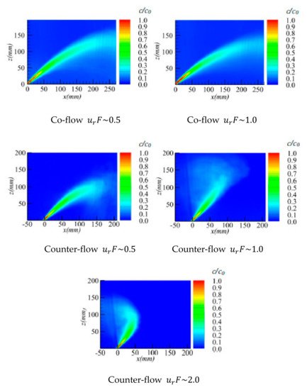 - Su, L.K.; Mungal, M.G. Simultaneous measurements of scalar and velocity field evolution in turbulent crossflowing jets. J. Fluid Mech. 2004, 513, 1–45. [Google Scholar] [CrossRef]