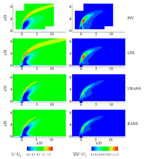 - Esmaeili, M.; Afshari, A.; Jaberi, F.A. Turbulent mixing in non-isothermal jet in crossflow. Int. J. Heat Mass Transf. 2015, 89, 1239–1257. [Google Scholar] [CrossRef]
