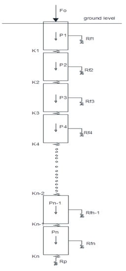 Figure 7 shows the pile model used to solve the load-settlement relationship. It consists of splitting the pile in equal-length slices. The slices are united by an elastic spring (Ki). Each of them has a weight (Pi) and ultimate skin friction (Rfi). The deepest slice has additionally a base resistance (Rp). At pile top, it is applied a load (F0).