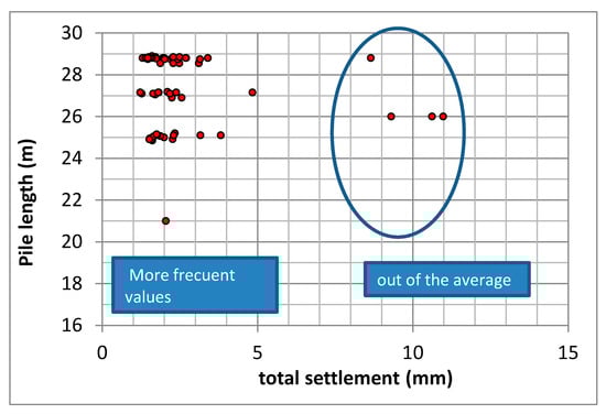 The following Figure 9 represents the length of the piles with respect to settlement. The following is observed:
