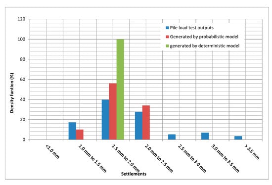 The model provides the pile settlement. The settlement is also a probability distribution function. Figure 18 below compares it with the pile load test distribution.