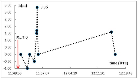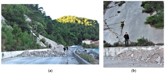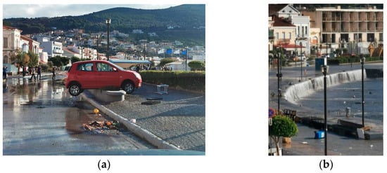 Other important earthquake associated phenomena, such as co-seismic coastal uplift and several types of ground failures, e.g., landslides, soil liquefaction, ground fissures and others, were also reported from Samos [,]. The co-seismic coastal uplift observed in Samos is of particular interest for the evaluation of the tsunami inundation and run-up in this island.