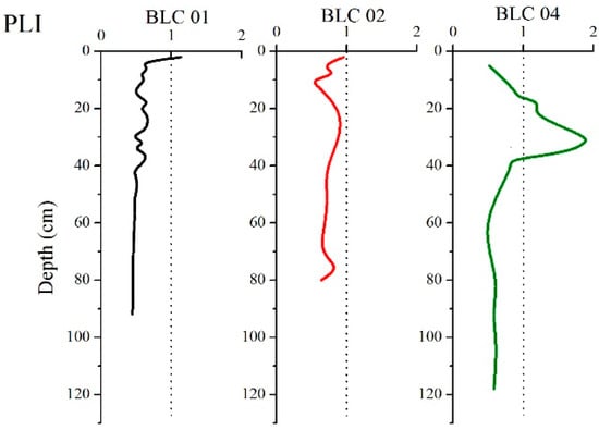 Vertical profiles of PLI for all core samples of Batticaloa lagoon.