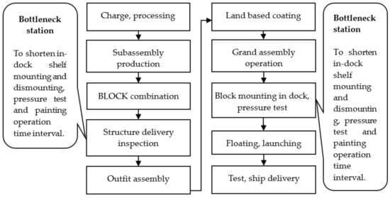 The shipbuilding industry has a huge production system involved in cutting, subassembly, block combination, painting, grand assembly, and assembling of a ship since millions of plates are required to be assembled. The manufacturing process uses the block production mode, so as to assemble the outfits and system pipe fittings and to perform block painting []. The production efficiency directly influences the time spent on shipbuilding, product quality, and construction cost []. It then becomes important to understand how to optimize the block construction sequence, shorten the shipbuilding period, and improve the quality of the products.
